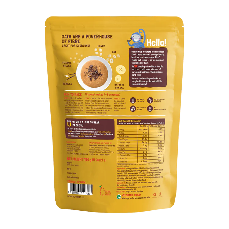 - Made using a blend of supergrains, real chocolate chips, and natural banana powder